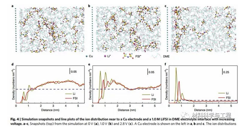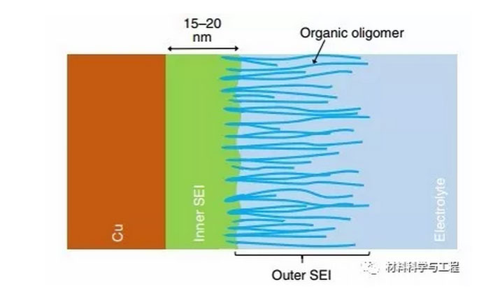 特別地,帶負(fù)電的電極表面從內(nèi)層排斥陰離子,并產(chǎn)生薄而致密的、無機(jī)的SEI內(nèi)層。正是這個(gè)致密層負(fù)責(zé)傳導(dǎo)Li +而絕緣電子。在SEI內(nèi)層形成后,會(huì)出現(xiàn)電解質(zhì)可滲透、富含有機(jī)物的外層。研究發(fā)現(xiàn)SEI內(nèi)層的主要成分為氧化鋰,否定了相界面上含有氟化鋰的傳統(tǒng)觀點(diǎn)。這些實(shí)時(shí)的納米級觀測將有助于為將來的電池設(shè)計(jì)更好的界面相。(來源:材料科學(xué)與工程公眾號(hào))
