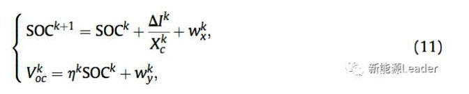 在該模型中的上角標是一個時間相關(guān)參數(shù),h是描述SoC與Voc之間的關(guān)系的常數(shù),可以從OCV-SoC曲線上獲得,Wx和Wy是高斯白噪聲,該模型是一個線性系統(tǒng),因此適合采用線性卡爾曼濾波,通過卡爾曼濾波可以對電池組的SoC和容量進行高效率的估算,電池組的SoC和容量的估算可以由下式計算而得