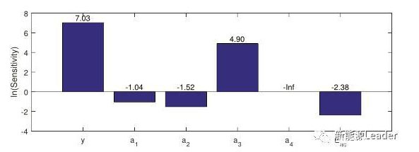 下圖展示了模型對不同參數(shù)的靈敏度,從圖上可以看到,模型對y和a3兩個參數(shù)靈敏度最高,因此這兩個參數(shù)對模型預(yù)測的準確度影響十分大。