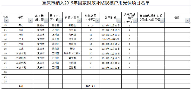 2.重慶市納入2019年國家財政補貼規(guī)模戶用光伏項目名單.xls
