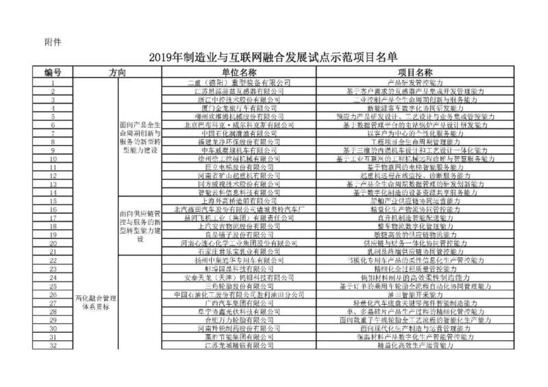 附件:2019年制造業(yè)與互聯(lián)網(wǎng)融合發(fā)展試點示范項目名單.pdf