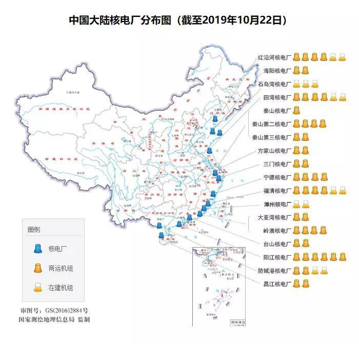 中國(guó)儲(chǔ)能網(wǎng)訊:日前,國(guó)家核安全局更新了中國(guó)大陸核電廠(chǎng)分布圖(截至2019年10月22日)。