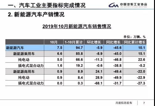 10月,新能源汽車產(chǎn)銷分別完成9.5萬(wàn)輛和7.5萬(wàn)輛,比上年同期分別下降35.4%和45.6%。