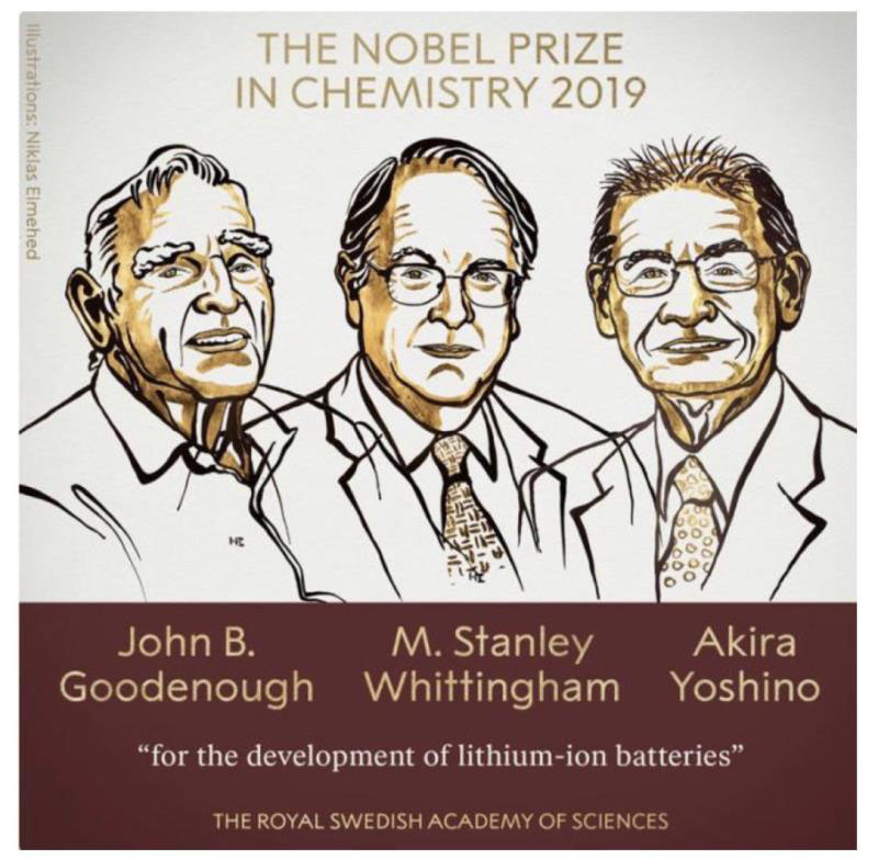 諾貝爾化學(xué)獎(jiǎng)花落鋰電池的喜訊,從瑞典傳向世界各地。來自美國(guó)的約翰·古迪納夫、英國(guó)的斯坦利·惠廷厄姆和日本的吉野彰三名科學(xué)家,共同分享2019諾貝爾化學(xué)獎(jiǎng)。