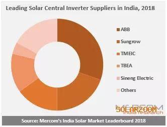 根據(jù)Mercom的調(diào)研,在印度市場,超過72%的逆變器供應(yīng)是集中式逆變器,在這個領(lǐng)域,ABB、陽光電源、東芝三菱電機、特變電工和上能電氣分別是印度市場前五大中央逆變器供應(yīng)商,占2018年供應(yīng)的中央逆變器總量的83%。