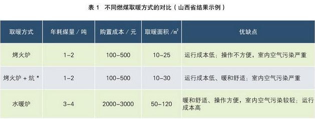 不同燃煤取暖方式的對(duì)比(山西省結(jié)果示例)資料來(lái)源:北方典型地區(qū)農(nóng)村居民冬季取暖研究報(bào)告