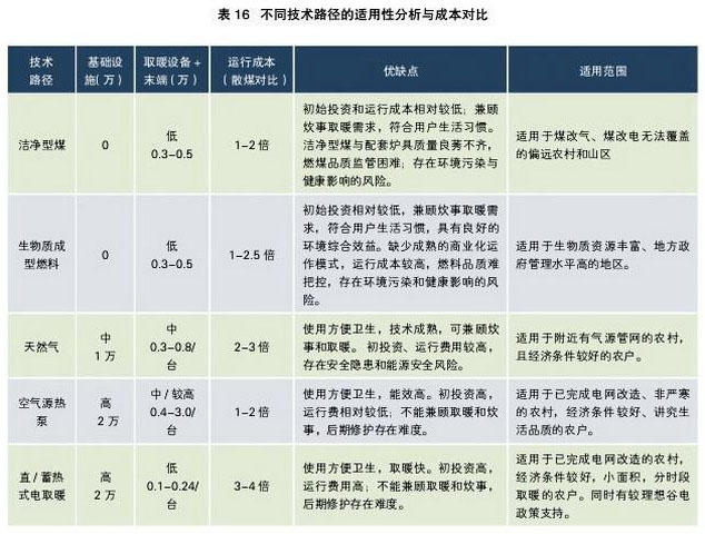 不同清潔取暖技術(shù)路徑的適用性分析與成本對(duì)比。資料來(lái)源:北方典型地區(qū)農(nóng)村居民冬季取暖研究報(bào)告