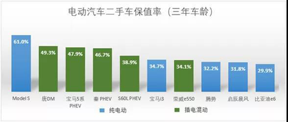 另外,動力電池更換費(fèi)用昂貴,電動車殘值低,二手車保值率不高。從中國汽車流通協(xié)會數(shù)據(jù)來看,三年車齡的國產(chǎn)純電動車二手車保值率普遍低于35%(圖4)。遠(yuǎn)低于燃油車平均60%的保值率水平。
