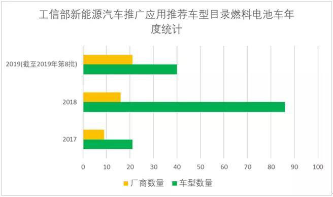 圖5 工信部燃料電池車廠商和車型數(shù)量統(tǒng)計(jì)