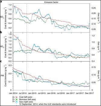 10月7日,來(lái)自中、英兩國(guó)的研究團(tuán)隊(duì)在英國(guó)《自然·能源》(Nature Energy)雜志上發(fā)表名為《超低排放標(biāo)準(zhǔn)出臺(tái)后,中國(guó)發(fā)電廠實(shí)現(xiàn)大幅減排》的學(xué)術(shù)論文,對(duì)中國(guó)2014年9月至2017年底的空氣數(shù)據(jù)進(jìn)行案例分析后,得出結(jié)論:自2014年以來(lái),中國(guó)針對(duì)燃煤火電機(jī)組采取的超低排放(Ultra-Low Emissions ,簡(jiǎn)稱ULE)改造措施已取得顯著成效。