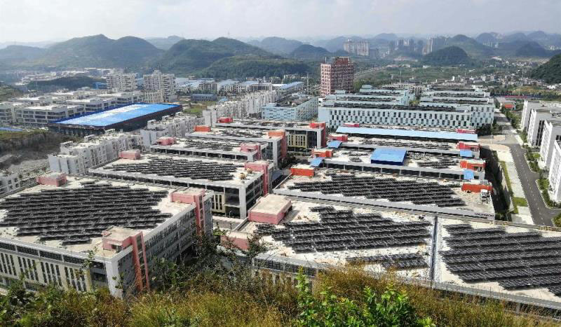 在項目設計和建設過程中,云南院項目部結合形狀各異的屋面設計,兼顧實際景觀,創(chuàng)新性實現(xiàn)了新能源太陽能電站與屋面景觀的交互融合,豐富了西秀經濟開發(fā)區(qū)綠色發(fā)展的新路徑、新形象,踐行了綠色發(fā)展理念。