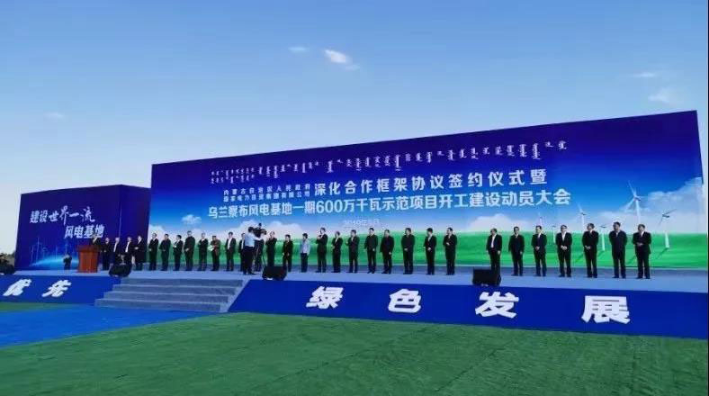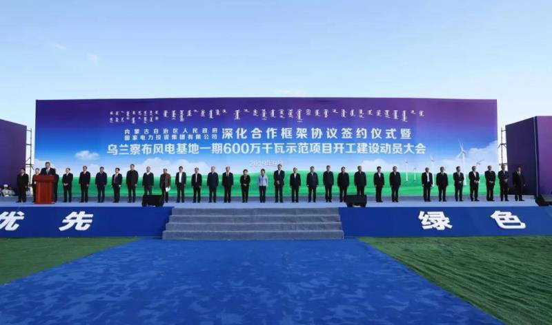 致力于打造世界一流清潔能源企業(yè)的國家電力投資集團(tuán)有限公司開啟關(guān)鍵一程。9月26日,內(nèi)蒙古自治區(qū)人民政府與國家電力投資集團(tuán)有限公司深化合作框架協(xié)議簽約儀式暨烏蘭察布風(fēng)電基地一期600萬千瓦示范項(xiàng)目開工建設(shè)動員大會在內(nèi)蒙古烏蘭察布四子王旗工程現(xiàn)場召開,標(biāo)志著項(xiàng)目進(jìn)入工程建設(shè)階段。