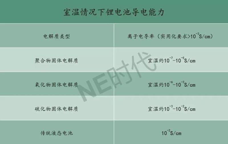 此外,有資料顯示,氧化物體系室溫下電導(dǎo)率約10-6-10-3S/cm,而傳統(tǒng)液態(tài)電解質(zhì)的離子電導(dǎo)率為 10-2S/cm左右。
