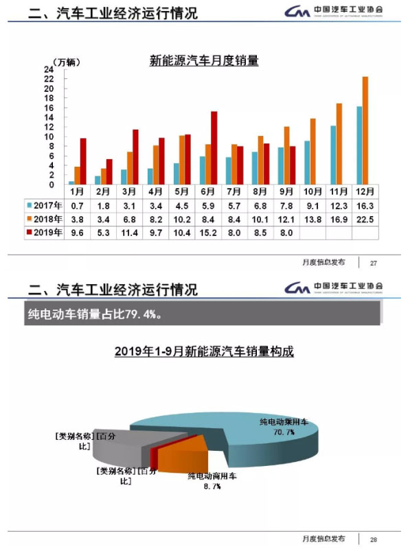 9月,新能源汽車產(chǎn)銷分別完成8.9萬輛和8萬輛,比上年同期分別下降29.9%和34.2%。這已經(jīng)是新能源汽車產(chǎn)銷連續(xù)三個月的大幅下滑,引發(fā)各方關(guān)注。許海東認為,這主要是受補貼大幅退坡影響,補貼下降后,企業(yè)面臨虧損,對新能源汽車大規(guī)模生產(chǎn)促銷積極性降低。