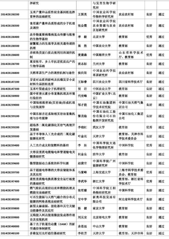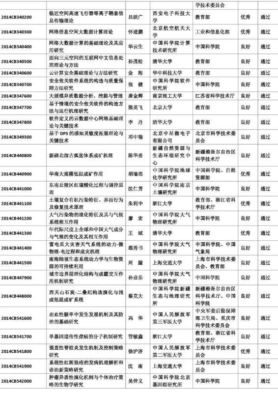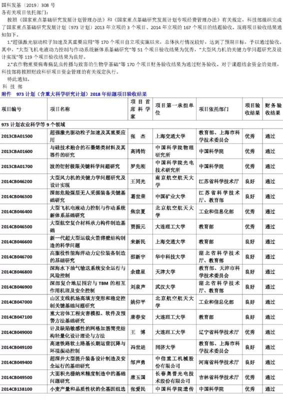 科技部關于發(fā)布國家重點基礎研究發(fā)展計劃(含重大科學研究計劃)2018年結題項目驗收結果的通知