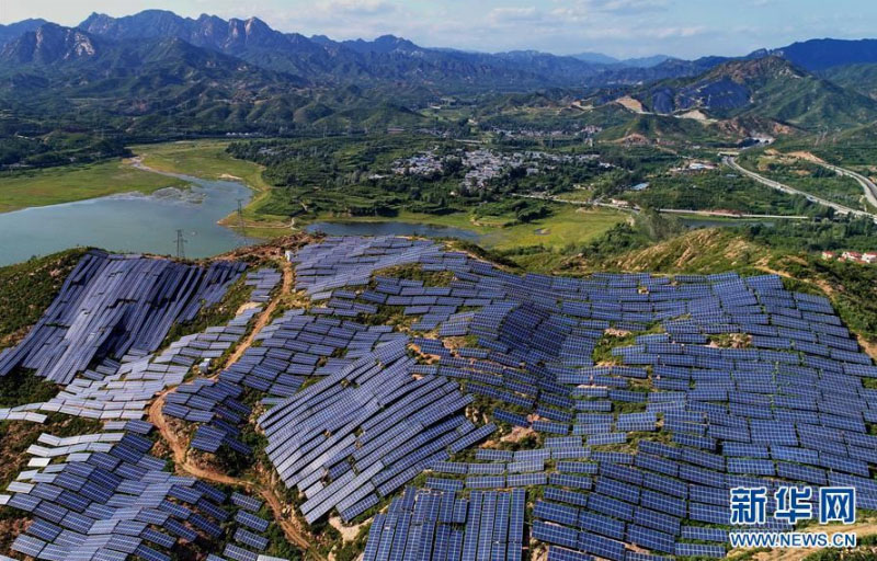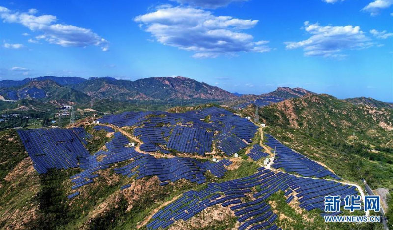 這是8月28日無人機拍攝的平山縣崗南鎮(zhèn)李家莊村附近荒山上的光伏發(fā)電站。新華社記者 楊世堯 攝
