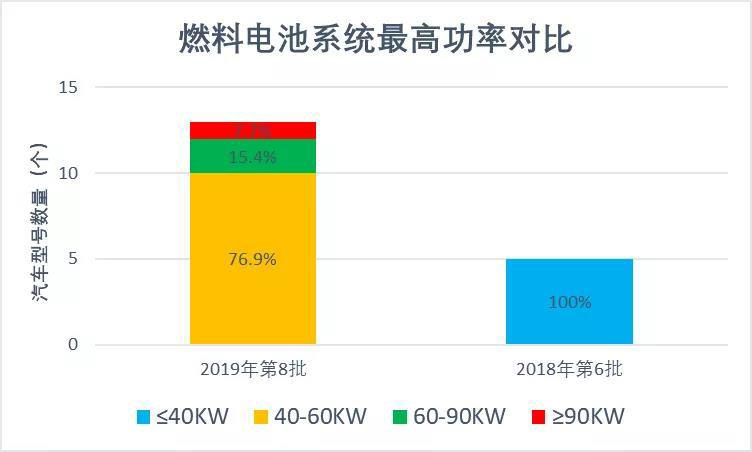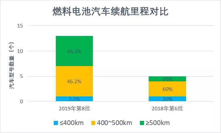 一批龍頭企業(yè)發(fā)展迅速,廣聚人才和資本優(yōu)勢(shì),展開(kāi)業(yè)內(nèi)廣泛合作,產(chǎn)品性能的得到較大提升。對(duì)比工信部新能源汽車推廣應(yīng)用推薦車型目錄2018年第6批和2019年第8批燃料電池汽車性能,較短時(shí)間內(nèi),燃料電池及整車技術(shù)水平進(jìn)步明顯。