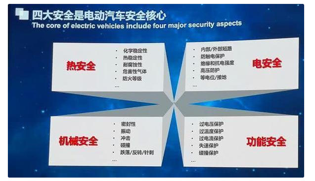 編者后記:電動汽車的安全問題實質(zhì)上就是電池安全問題,它包括了熱安全、電安全、機械安全、功能安全。其中任何一項失效,輕則影響電動汽車的功能,重則引起起火自燃。安全是電動汽車選購的第一要素,只有在車輛設(shè)計之初就充分的考慮到電池安全問題,才能在萬一發(fā)生不測,比如嚴重碰撞或者極端惡劣的氣候環(huán)境中,最大限度地阻止電池發(fā)生漏電或者燃燒,保護人的生命安全。