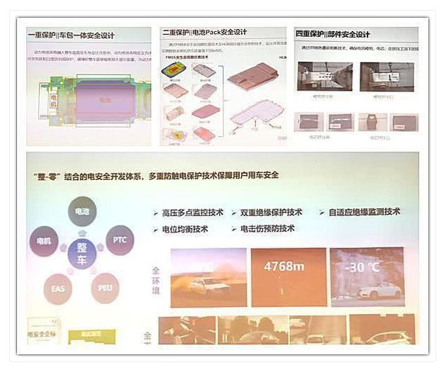 漏電保護:比亞迪電動車的高壓系統(tǒng)有嚴密的漏電保護功能,系統(tǒng)一旦偵測到高壓電泄露,就會自動斷電,同時迅速把高壓零部件內(nèi)部電壓釋放至安全水平,釋放過程在3秒以內(nèi)。