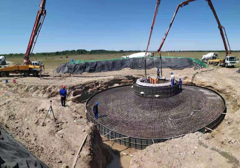 8月30日19時,隨著最后一輛水泥罐車卸載完畢,中國能建黑龍江能建公司總承包建設(shè)的張北弘泰玉帶灣49.5兆瓦風(fēng)電場首臺風(fēng)機基礎(chǔ)砼澆筑順利完成。
