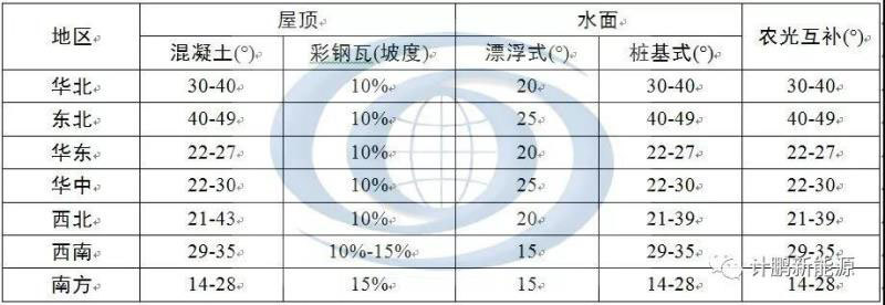 注:該最佳傾角參考各大區(qū)域南北緯度及海拔計算得出。
