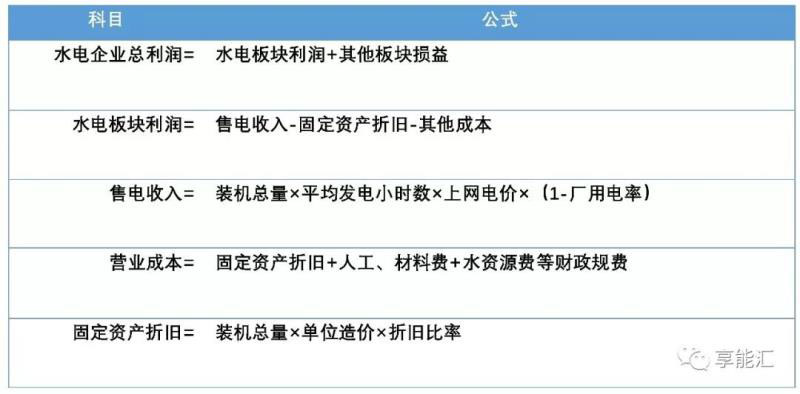 水電板塊利潤=裝機總量×平均發(fā)電小時數(shù)×上網(wǎng)電價-固定資產(chǎn)折舊-其他成本。