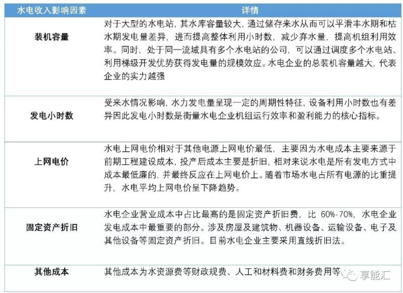 顯然,裝機容量、發(fā)電小時數(shù)、上網(wǎng)電價三者共同決定了水電企業(yè)的營業(yè)收入,而機組固定資產(chǎn)折舊則是水電企業(yè)成本的主要構(gòu)成。