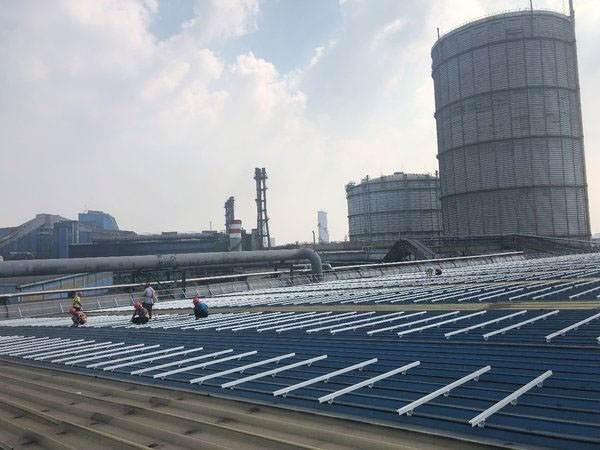 中國儲能網(wǎng)訊:近日,國內(nèi)智慧光伏綠能服務(wù)領(lǐng)軍企業(yè)道達(dá)爾遠(yuǎn)景公司與鋼鐵行業(yè)龍頭標(biāo)桿企業(yè)中天鋼鐵集團(tuán)展開戰(zhàn)略合作,道達(dá)爾遠(yuǎn)景為中天鋼鐵提供基于屋頂光伏的智慧綠色能源解決方案,助力其實現(xiàn)綠色低碳轉(zhuǎn)型。該分布式光伏項目容量為9.63MW,由道達(dá)爾遠(yuǎn)景投資開發(fā)、建設(shè)并且運(yùn)營,目前項目已正式開工,預(yù)計將于9月底實現(xiàn)全容量并網(wǎng)發(fā)電。該項目利用閑置屋頂面積約9.5萬平,預(yù)計年發(fā)電量超1000萬度,每年可節(jié)約標(biāo)準(zhǔn)煤約3600公斤,將減少二氧化碳排放近萬噸。