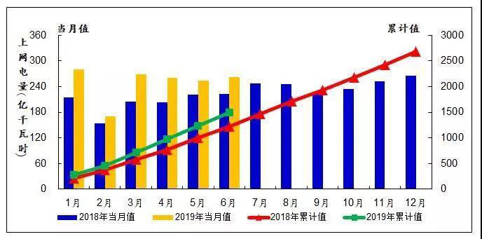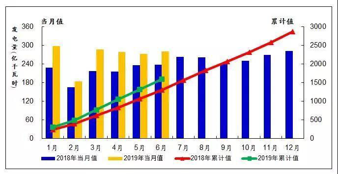 圖1 2019年1-6月全國(guó)發(fā)電量統(tǒng)計(jì)分布
