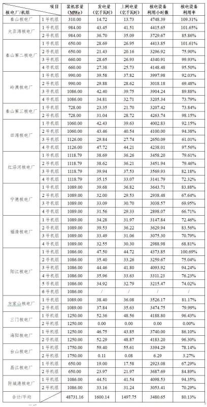 2、機(jī)組核電設(shè)備利用率低于60%的主要原因說(shuō)明如下: