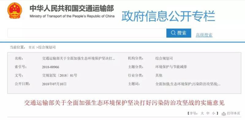 2018年6月,交通運(yùn)輸部就在例行新聞發(fā)布會(huì)上通知,要求到2020年底,我國(guó)重點(diǎn)區(qū)域直轄市、省會(huì)城市、計(jì)劃單列市建成區(qū)的公交車將全部更換為新能源汽車。并于2018年7月,在其官網(wǎng)發(fā)布《交通運(yùn)輸部關(guān)于全面加強(qiáng)生態(tài)環(huán)境保護(hù)堅(jiān)決打好污染防治攻堅(jiān)戰(zhàn)的實(shí)施意見(jiàn)》。