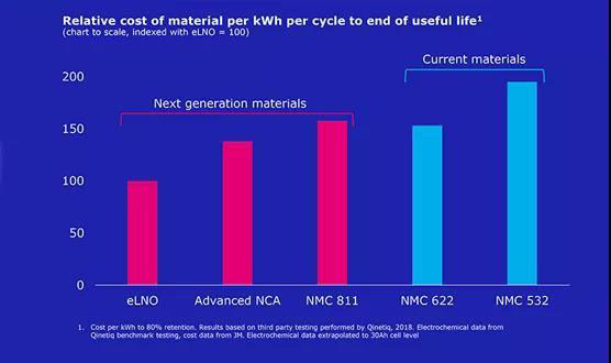 據(jù)了解,莊信萬豐當(dāng)前正在一種高能量鎳基正極材料,內(nèi)部也稱之為增強(qiáng)型鎳酸鋰(eLNO),其宣稱能量密度超過了當(dāng)前所有的三元體系。