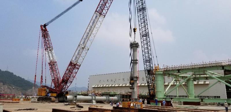 該項目海上升壓站鋼結(jié)構(gòu)采用四根主柱和對應(yīng)的柱間梁,搭建成為一個主框架,安裝一至四層鋼結(jié)構(gòu)和設(shè)備,主柱長19.8米,重約40噸。
