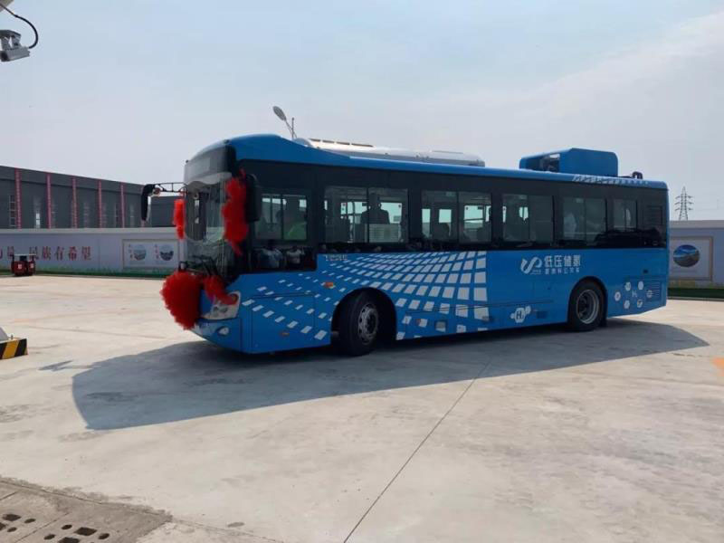 ▲圖為全球首臺(tái)低壓儲(chǔ)氫公交車(chē)