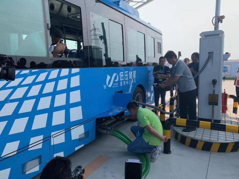 ▲圖為低壓儲(chǔ)氫公交車(chē)加氫過(guò)程