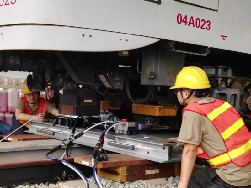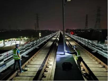 技術人員對采用第三軌供電的14號線開展防雷檢測