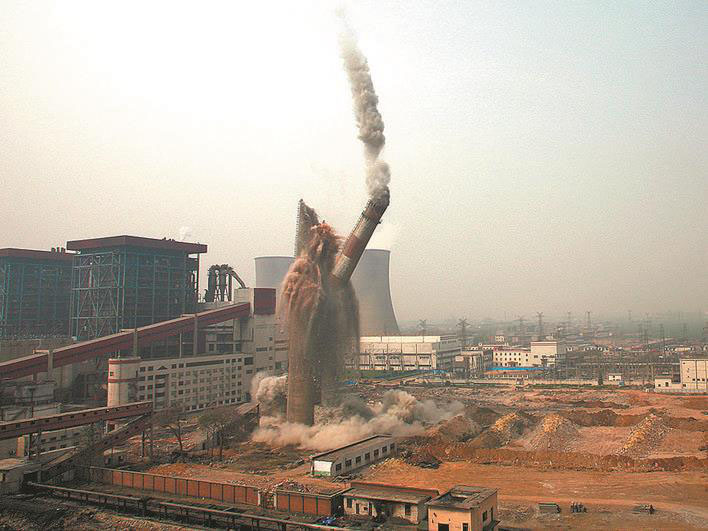 2007年1月28日,在大唐安陽電廠內(nèi),“加快上大壓小步伐,提高資源利用率”的宣傳標語鮮艷醒目。10時30分,隨著一聲令下,巨大的煙塵騰空而起,1萬平方米的機房坍塌。安陽電廠兩臺10萬千瓦機組成功實施全國“第一爆”,不僅拉開了河南省關(guān)停小機組的序幕,也成為“十一五”期間全國關(guān)停小機組的標志性事件。我國火電機組“上大壓小”此后按下了“加速鍵”。