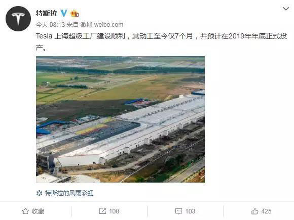 8月7日,特斯拉官微宣布,位于上海的特斯拉超級(jí)工廠建設(shè)順利,其動(dòng)工至今僅7個(gè)月,預(yù)計(jì)在2019年年底正式投產(chǎn)。