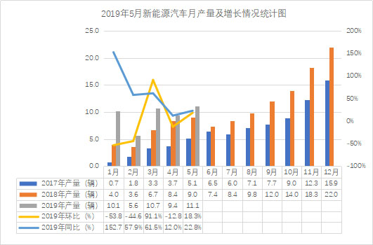 高歌猛進(jìn),2019年1-5月新能源汽車(chē)總產(chǎn)48萬(wàn)輛,同比增長(zhǎng)48.7%