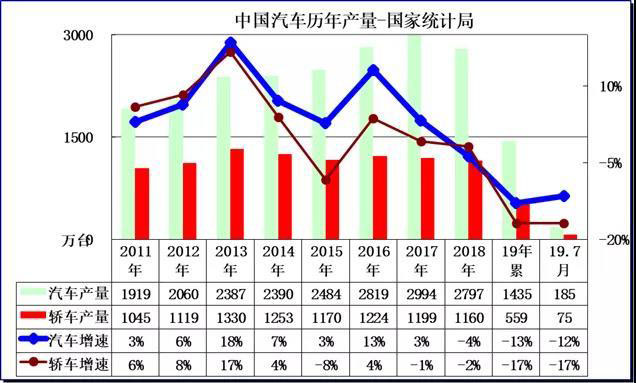 19年1-7月的汽車產(chǎn)量1435萬臺,增速-13%,較18年的-4%偏低的行業(yè)增速較差,這是是樓市火爆、消費不強(qiáng)因素下的汽車低迷。