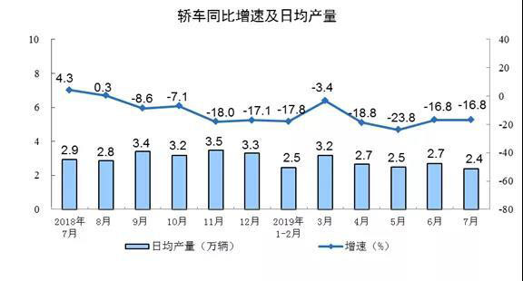 7月份日均轎車生產(chǎn)2.4萬臺,同比下降17%。轎車去年7月日均2.8萬臺。今年由于產(chǎn)品不足和市場低迷壓力, 7月生產(chǎn)走弱明顯。但沒有進(jìn)一步嚴(yán)峻下降。