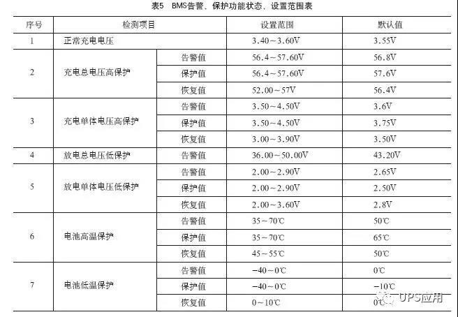 梯級電池的BMS各種檢測項目的功能狀態(tài)及參數設置范圍應包括表5所示的內容。