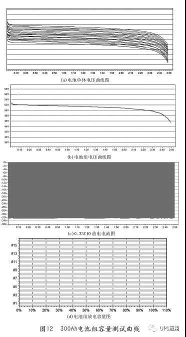 在安裝電池組對電池組進行了補充充電后,將電池組分別進行了0.33C10在線測試放電情況。測試場景如圖11所示。一組300Ah電池組容量測試曲線如圖12所示。