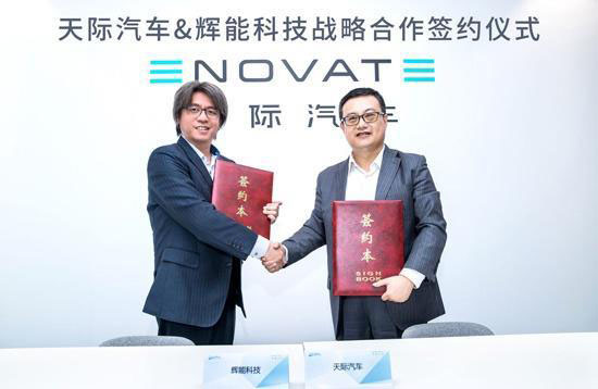 天際汽車董事長(zhǎng)兼CEO張海亮博士(右)和輝能科技創(chuàng)辦人兼總經(jīng)理、CEO楊思枬博士(左)代表雙方企業(yè)進(jìn)行戰(zhàn)略合作簽約