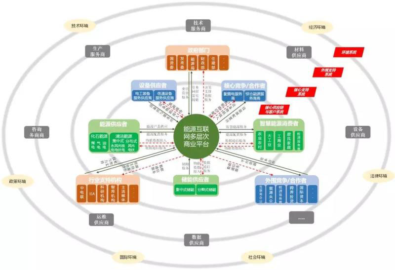 堅強智能電網(wǎng)與泛在電力物聯(lián)網(wǎng)將融合發(fā)展成為能源互聯(lián)網(wǎng),成為能源電力全產(chǎn)業(yè)鏈能源交匯轉(zhuǎn)換、業(yè)務開拓創(chuàng)新與價值創(chuàng)造分享的樞紐。國家電網(wǎng)將依托能源互聯(lián)網(wǎng),圍繞產(chǎn)業(yè)鏈需求,在發(fā)輸配售儲等多個環(huán)節(jié)發(fā)起建設開放共享的多層次商業(yè)平臺體系,形成智慧能源商業(yè)的網(wǎng)絡協(xié)同效應,為能源電力產(chǎn)業(yè)鏈打造新的商業(yè)生態(tài)。