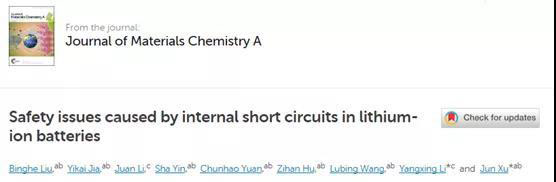 第一項(xiàng)成果:Safety issues caused by internal short circuits in lithium-ion batteries(鋰離子電池內(nèi)部短路引起的安全問題)。