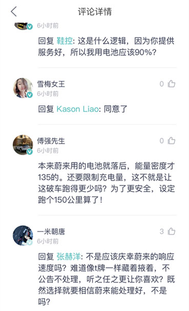 此舉引來(lái)不少蔚來(lái)ES8用戶(hù)在APP端表達(dá)不滿(mǎn),限制充電量90%之后,續(xù)航里程也會(huì)相應(yīng)縮短。