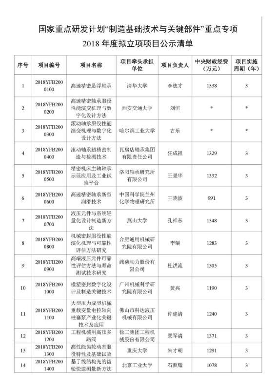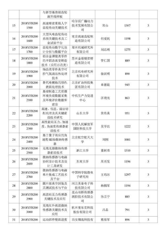 根據(jù)《國(guó)務(wù)院關(guān)于改進(jìn)加強(qiáng)中央財(cái)政科研項(xiàng)目和資金管理的若干意見》(國(guó)發(fā)〔2014〕11號(hào))、《國(guó)務(wù)院關(guān)于深化中央財(cái)政科技計(jì)劃(專項(xiàng)、基金等)管理改革方案的通知》(國(guó)發(fā)〔2014〕64號(hào))、《科技部、財(cái)政部關(guān)于印發(fā)<國(guó)家重點(diǎn)研發(fā)計(jì)劃管理暫行辦法>的通知》(國(guó)科發(fā)資〔2017〕152號(hào))等文件要求,現(xiàn)對(duì)“制造基礎(chǔ)技術(shù)與關(guān)鍵部件”重點(diǎn)專項(xiàng)2018年度擬立項(xiàng)的項(xiàng)目信息進(jìn)行公示(詳見附件)。