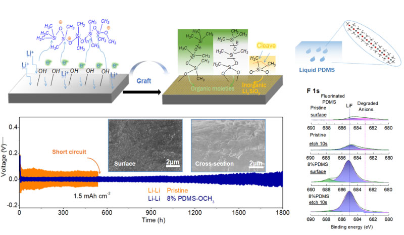 液態(tài)聚二甲基硅氧烷的界面原位催化嫁接以實(shí)現(xiàn)無(wú)枝晶的鋰電鍍和高可逆的鋰金屬電池