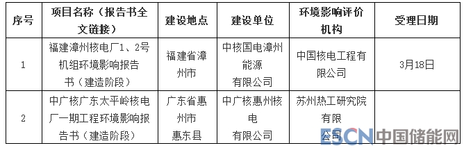 據(jù)生態(tài)環(huán)境部官網(wǎng)3月18日消息,生態(tài)環(huán)境部發(fā)布《關于2019年3月18日建設項目環(huán)境影響評價文件受理情況的公示(核與輻射)》,根據(jù)公示信息,廣東太平嶺核電廠和福建漳州核電廠的核電機組預計在6月份開工建設。